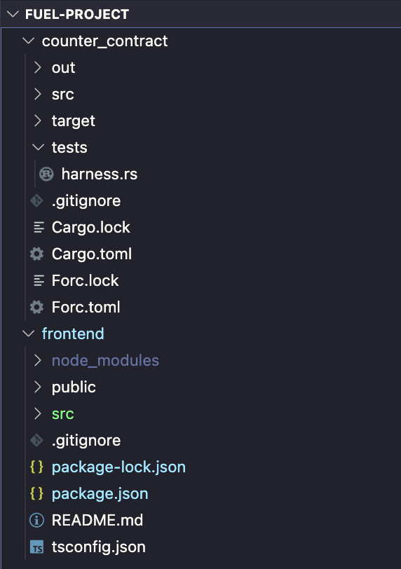 Success! Created frontend at Fuel/fuel-project/frontendYou should now have your outer folder, fuel-project, with two folders inside: counter-contract and frontend